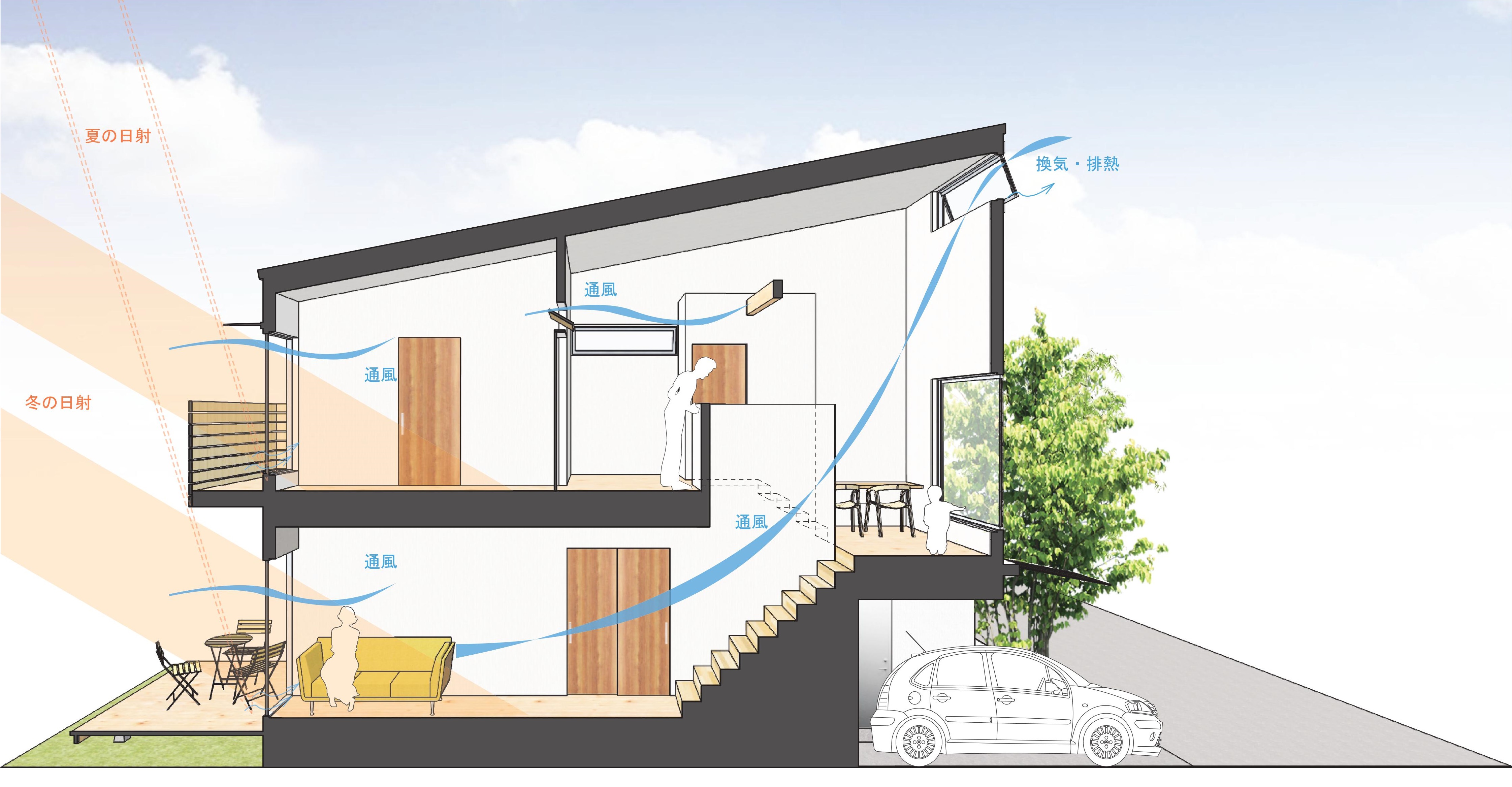 戸建住宅におけるパッシブデザインの仕組みの一例